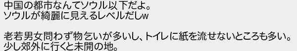 中国の都市なんてソウル以下だよ ソウルが麗に見えるレベルだし 老若男女問わず物乞いが多いしトイレに紙を流せないところも多い 少し郊外に行くと未開の地