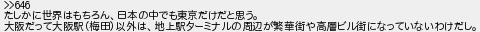 647: (やわらか銀行) [sage] 2017/04/30(日) 10:36:09.88 ID:6KxrUAR+ >>646 たしかに世界はもちろん、日本の中でも東京だけだと思う。 大阪だって大阪駅(梅田)以外は、地上駅ターミナルの周辺が繁華街や高層ビル街になっていないわけだし。 http://egg.5ch.io/test/read.cgi/develop/1491221337/647