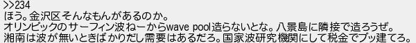237: (禿) [] 2017/05/13(土) 16:55:53.48 ID:tk7Czui0 >>234 ほう。金沢区そんなもんがあるのか。 オリンピックのサーフィン波ねーからwave pool造らないとな。八景島に隣接で造ろうぜ。 湘南は波が無いときばかりだし需要はあるだろ。国家波研究機関にして税金でブッ建てろ。 http://egg.5ch.io/test/read.cgi/develop/1494495787/237