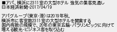アパ横浜に室の大型ホテル 強気の集客見通し 日本経済新聞 アパグループ東京港は年秋 横浜市に客室数室の大型ホテルを開業する 国内有数の規模で年の東京五輪パラリンピックに向けて 増える観光ビジネス客を取り込む