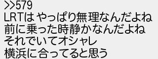 586: (SB-iPhone) [sage] 2017/05/17(水) 01:05:00.24 ID:QCuJqRxr >>579 LRTはやっぱり無理なんだよね 前に乗った時静かなんだよね それでいてオシャレ 横浜に合ってると思う http://egg.5ch.io/test/read.cgi/develop/1494495787/586