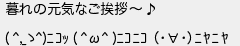879: (神奈川県) [] 2017/05/19(金) 21:09:44.60 ID:Rx5H6++R 暮れの元気なご挨拶〜♪ ( ^,_ゝ^)ニコッ ( ^ω^ )ニコニコ (・∀・)ニヤニヤ http://egg.5ch.io/test/read.cgi/develop/1494495787/879