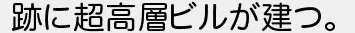 653: (やわらか銀行) [] 2017/08/03(木) 10:12:29.79 ID:PhfKvk9B 跡に超高層ビルが建つ。 http://egg.5ch.io/test/read.cgi/develop/1500612088/653