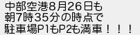 中部空港8月26日も 朝7時35分の時点で 駐車場もも満車!!!