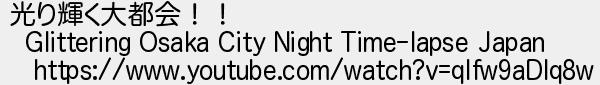 65: (茸) [] 2017/08/31(木) 22:56:01.36 ID:yOLDJsjx 光り輝く大都会!! Glittering Osaka City Night Time-lapse Japan https://www.youtube.com/watch?v=qIfw9aDlq8w http://egg.5ch.net/test/read.cgi/develop/1504101366/65