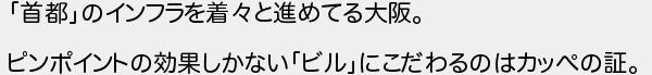 首都のインフラを着と進めてる大阪 ピンポイントの効果しかないビルにこだわるのはカッぺの証