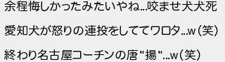 余程悔しかったみたいやねませ犬犬死 愛知犬が怒りの連投をしててワロタ笑 終わり名古屋コーチンの唐揚笑