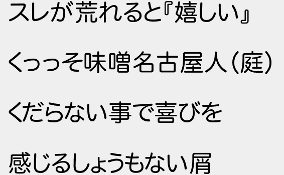 スレが荒れると嬉しい くっっそ味噌名古屋人庭 くだらない事で喜びを 感じるしょうもない屑