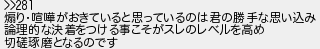 282: (神奈川県) [] 2017/11/23(木) 21:47:00.65 ID:kEWplXCK >>281 煽り・喧嘩がおきていると思っているのは君の勝手な思い込み 論理的な決着をつける事こそがスレのレベルを高め 切磋琢磨となるのです http://egg.5ch.io/test/read.cgi/develop/1510299949/282
