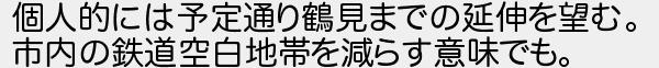 個人的には予定通り鶴見までの延伸を望む 市内の鉄道空白地帯を減らす意味でも