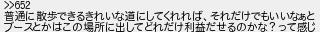 普通に散歩できるきれいな道にしてくれればそれだけでもいいなぁと ブースとかはこの場所に出してどれだけ利益だせるのかな?って感じ