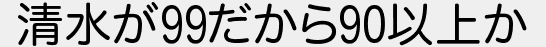 593: (禿) [] 2017/12/28(木) 22:46:56.22 ID:na5djNhM 清水が99だから90以上か http://egg.5ch.net/test/read.cgi/develop/1512296014/593