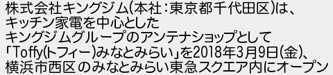 株式会社キングジム本社東京都千代田区は キッチン家電を中心とした キングジムグループのアンテナショップとして トフィーみなとみらいを年月日金 横浜市西区のみなとみらい東急スクエア内にオープン