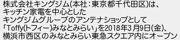 株式会社キングジム本社東京都千代田区は キッチン家電を中心とした キングジムグループのアンテナショップとして トフィーみなとみらいを年月日金 横浜市西区のみなとみらい東急スクエア内にオープン