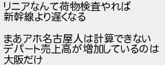 リニアなんて荷物検査やれば 新幹線より遅くなる まあアホ名古屋人は計算できない デパート売上高が増加しているのは 大阪だけ