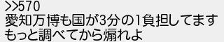576: (愛知県) [] 2018/11/25(日) 20:47:56.59 ID:Wo5t2mua >>570 愛知万博も国が3分の1負担してます もっと調べてから煽れよ http://egg.5ch.net/test/read.cgi/develop/1540959778/576