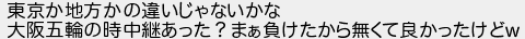 東京か地方かの違いじゃないかな 大阪五輪の時中継あった?まぁ負けたから無くて良かったけど