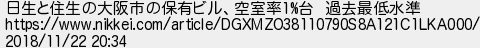 764: (やわらか銀行) [] 2018/11/22(木) 20:51:34.99 ID:WwbKf5rD 日生と住生の大阪市の保有ビル、空室率1%台 過去最低水準 https://www.nikkei.com/article/DGXMZO38110790S8A121C1LKA000/ 2018/11/22 20:34 http://egg.5ch.io/test/read.cgi/develop/1541903199/764