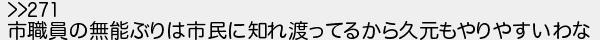 273: (茸) [] 2018/12/11(火) 08:35:45.67 ID:oQkTwWQL >>271 市職員の無能ぶりは市民に知れ渡ってるから久元もやりやすいわな http://egg.5ch.net/test/read.cgi/develop/1541930630/273