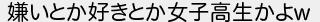 781: (兵庫県) [sage] 2019/02/07(木) 09:27:41.41 ID:QZyvB1Qa 嫌いとか好きとか女子高生かよw http://egg.5ch.net/test/read.cgi/develop/1541930630/781