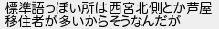 標準語っぽい所は西宮北側とか芦屋 移住者が多いからそうなんだが