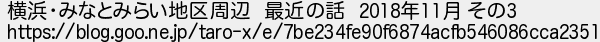 199: (禿) [] 2018/12/06(木) 13:06:21.60 ID:NQz0wD5E 横浜・みなとみらい地区周辺 最近の話 2018年11月 その3 https://blog.goo.ne.jp/taro-x/e/7be234fe90f6874acfb546086cca2351 http://egg.5ch.io/test/read.cgi/develop/1543618112/199