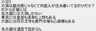 331: (catv?) [] 2019/01/02(水) 23:44:52.00 ID:QAv1xCEP >>323 大須は観光客じゃなくて外国人が住み着いてるだけだろ? だから正確には 名古屋には大須しかない 東京には皇居も浅草も上野もある 大阪には四天王寺も黒門市場も心斎橋もある 名古屋は退屈で詰まらん http://egg.5ch.net/test/read.cgi/develop/1545838338/331