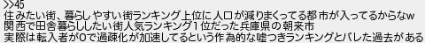 住みたい街暮らしやすい街ランキング上位に人口が減りまくってる都市が入ってるからな 関西で田舎暮らししたい街人気ランキング1位だった兵庫県の朝来市 実際は転入者が0で過疎化が加速してるという作為的な嘘つきランキングとバレた過去がある