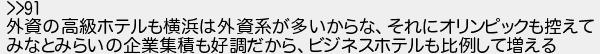 外資の高級ホテルも横浜は外資系が多いからなそれにオリンピックも控えて みなとみらいの企業集積も好調だからビジネスホテルも比例して増える