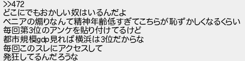 474: (やわらか銀行) [sage] 2019/04/25(木) 19:39:02.10 ID:b09DY/Ix >>472 どこにでもおかしい奴はいるんだよ ベニアの煽りなんて精神年齢低すぎてこちらが恥ずかしくなるくらい 毎回第3位のアンケを貼り付けてるけど 都市規模gdp見れば横浜は3位だからな 毎回このスレにアクセスして 発狂してるんだろうな http://egg.5ch.net/test/read.cgi/develop/1554547764/474