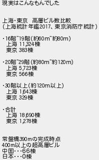 現実はこんなもんでした 上海東京 高層ビル数比較 上海統計年鑑東京消防庁統計 階階約約 上海 棟 東京 棟 階階約約 上海 棟 東京 棟 階以上約以上 上海 棟 東京 棟 合計 上海 棟 東京 棟 常盤橋の完成時点 以上の超高層ビル 中国66棟 日本0棟