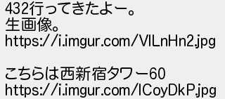 91: (東京都) [sage] 2019/04/23(火) 20:47:43.14 ID:umP6nv+5 432行ってきたよー。 生画像。 https://i.imgur.com/VlLnHn2.jpg こちらは西新宿タワー60 https://i.imgur.com/lCoyDkP.jpg http://egg.5ch.net/test/read.cgi/develop/1555757421/91