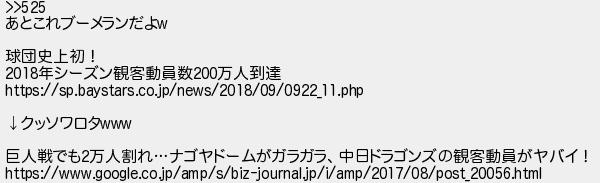 527: (SB-iPhone) [sage] 2019/05/13(月) 18:44:51.28 ID:PqcwjGWK >>525 あとこれブーメランだよw 球団史上初! 2018年シーズン観客動員数200万人到達 https://sp.baystars.co.jp/news/2018/09/0922_11.php ↓クッソワロタwww 巨人戦でも2万人割れ…ナゴヤドームがガラガラ、中日ドラゴンズの観客動員がヤバイ! https://www.google.co.jp/amp/s/biz-journal.jp/i/amp/2017/08/post_20056.html http://egg.5ch.net/test/read.cgi/develop/1556697301/527