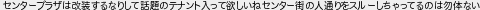 センタープラザは改装するなりして話題のテナント入って欲しいねセンター街の人通りをスルーしちゃってるのは勿体ない