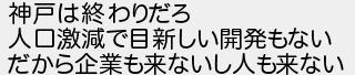 神戸は終わりだろ 人口激減で目新しい開発もない だから企業も来ないし人も来ない