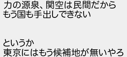 力の源泉関空は民間だから もう国も手出しできない というか 東京にはもう候補地が無いやろ