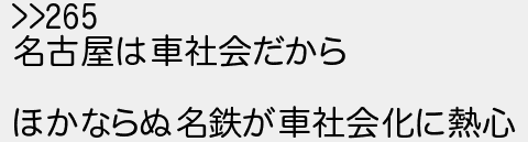 283: (光) [sage] 2019/09/25(水) 13:52:31.15 ID:K84zx2n1 >>265 名古屋は車社会だから ほかならぬ名鉄が車社会化に熱心 http://egg.5ch.net/test/read.cgi/develop/1569065014/283