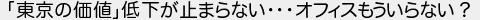 271: (神奈川県) [sage] 2021/11/20(土) 09:10:09.09 ID:3sSO7Sis 「東京の価値」低下が止まらない・・・オフィスもういらない? http://egg.5ch.net/test/read.cgi/develop/1571381808/271