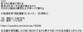 能力なら賃金に現れる 東京は日本一大企業が集まるから それだけ横浜は優秀な人が多いって事だよ 都道府県純貯蓄額ランキング 位神奈川 位 神奈川 万円 位 愛知 万円 名古屋は東京圏に人口吸い取られてるから寧ろやばいのは名古屋なんだけどね