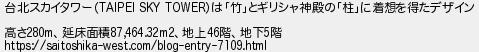 台北スカイタワー は竹とギリシャ神殿の柱に着想を得たデザイン 高さ延床面積地上階地下階