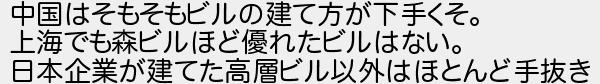 中国はそもそもビルの建て方が下手くそ 上海でも森ビルほど優れたビルはない 日本企業が建てた高層ビル以外はほとんど手抜き