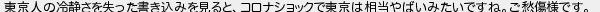 東京人の冷静さを失った書き込みを見るとコロナショックで東京は相当やばいみたいですねご愁傷様です
