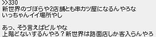 新世界のづぼらや店舗とも串カツ屋になるんやろな いっちゃんイイ場所やし あっそう言えばビルやな 上階どないするんやろ?新世界は路面店しか客入らんやろ