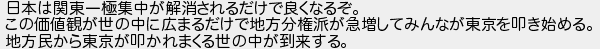 日本は関東一極集中が解消されるだけで良くなるぞ この価値観が世の中に広まるだけで地方分権派が急増してみんなが東京を叩き始める 地方民から東京が叩かれまくる世の中が到来する