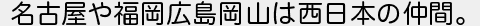名古屋や福岡広島岡山は西日本の仲間