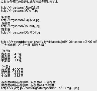 203: (SB-Android) [] 2020/10/08(木) 19:10:15.87 ID:2Mi+QxFg これから横浜の鉄道はまだまだ発展しますよ http://imgur.com/tRcAlG8.gif http://imgur.com/xRfxafT.jpg 中京圏 http://imgur.com/D4jQV7r.jpg 近畿圏 http://imgur.com/X5BdbIy.jpg 首都圏 http://imgur.com/E0v7T84.jpg https://www.mintetsu.or.jp/activity/databook/pdf/17databook_p06-07.pdf 三大都市圏 2016年度 輸送人員 (年間) 首都圏 146憶 関西圏 45憶 中京圏 11憶 (一日) 首都圏 4000万 関西圏 1228万 中京圏 312万 首都圏の輸送規模は、中京圏の13倍程度 関西圏の輸送規模は、首都圏の30%程度 https://s.yimg.jp/i/docs/bigdata/special/2016/01/img01.png http://egg.5ch.net/test/read.cgi/develop/1592812877/203