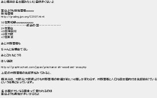 464: (茸) [] 2022/07/16(土) 15:31:08.82 ID:UAq/K1DF あと横浜は名古屋みたいに自然多くないよ 富山よりも耕地面積wwww 耕地面積 http://grading.jpn.org/C3107.html 16位愛知県wwwwwwwww ――――――――-都会の壁―――――――- 24位富山 45位神奈川 46位大阪 47位東京 あと林野面積も ちゃんと指標出てるし あとこれもどうそ はい論破 https://graphtochart.com/japan/yokohama-shi-woodland-area.php 上記の林野面積の比較表をみてみると、 横浜市は、大阪市(大阪府)よりも林野面積の数値が約3,746程しか変わらず、林野面積と人口も日本国内では比較的似ている という結果となっています。 名古屋が大いなる田舎って言われるのは 富山よりも農地が多いからだよ http://egg.5ch.net/test/read.cgi/develop/1592812877/464
