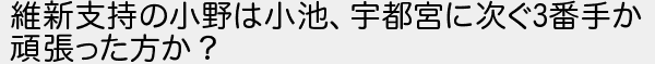 維新支持の小野は小池宇都宮に次ぐ番手か 頑張った方か?