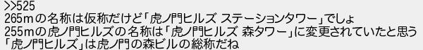 541: (東京都) [] 2020/07/16(木) 05:36:34.09 ID:Jj2BolYe >>525 265mの名称は仮称だけど「虎ノ門ヒルズ ステーションタワー」でしょ 255mの虎ノ門ヒルズの名称は「虎ノ門ヒルズ 森タワー」に変更されていたと思う 「虎ノ門ヒルズ」は虎ノ門の森ビルの総称だね http://egg.5ch.io/test/read.cgi/develop/1593762965/541