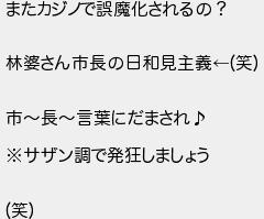 またカジノで誤魔化されるの? 林婆さん市長の日和見主義笑 市長言葉にだまされ サザン調で発狂しましょう 笑